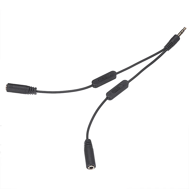 3.5mm Audio Jack Splitter Cable with Separate Volume Control headphone phone AUX Cable. 3.5 jack Splitter Male to 2 Female jack. This passive Audio Splitter cable lets you share a 3.5mm audio source with two speakers / headphones, while individually contr3.5mm Stereo Audio 1 Male to 2 Female Splitter Adapter With Volume SwitchConnectors: 3.5mm 1 Male to 3.5mm 2 Female.With this adapter and a friend can both listen to your music player at the same time.Dual-independent volume control – set it as loud or quiet as you want.Two sets of 3.5mm headphones in a standard 3.5mm stereo socket with this adapter.Great for your iPod, Walkman, PDA, computer, hi-fi system, or other portable media players.Excellent sound reproduction and signal-to-noise ratio